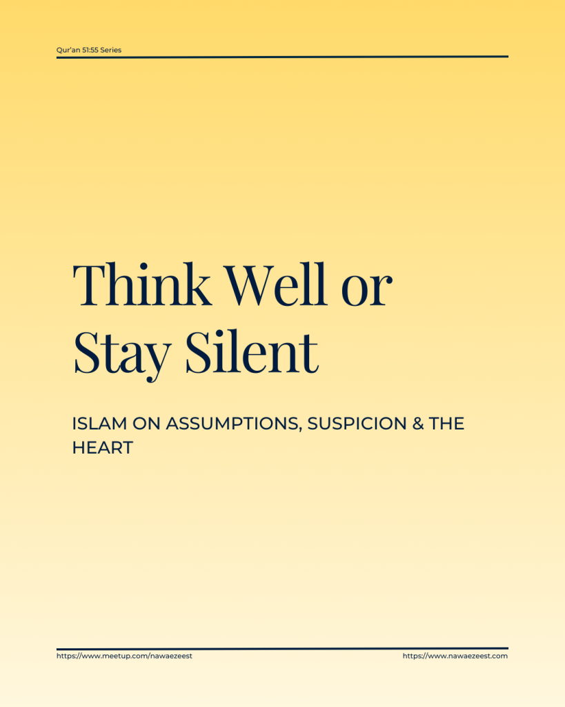 Faith begins in the heart. By managing our assumptions and fostering husn al-dhann — thinking well of others — we safeguard our character, protect the honor of those around us, and nurture both personal and communal wellbeing.