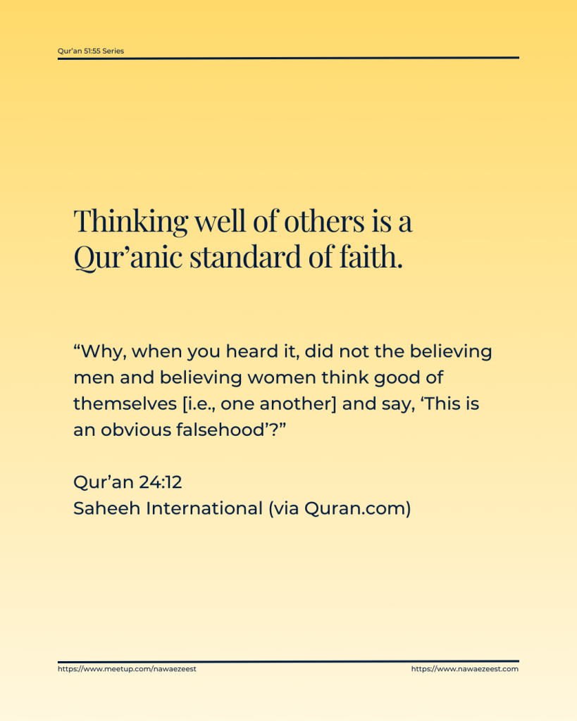 The Qur’an continues in Surah An-Nur (24:12), asking: